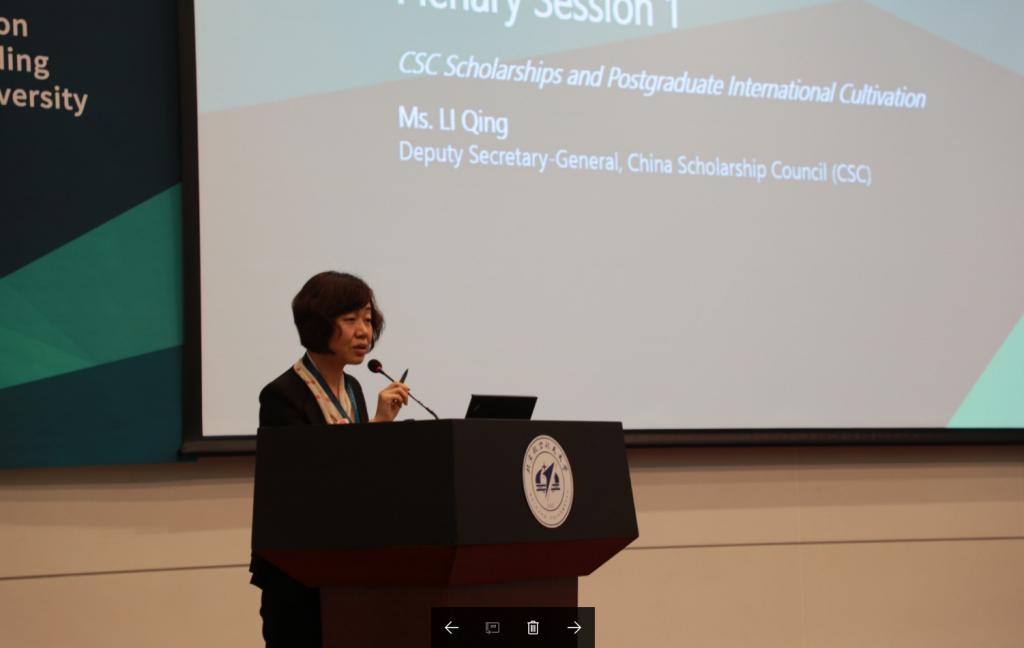 国家留学基金委李青副秘书以“国家留学基金与人才国际化培养”为题,向参会代表介绍了国家留学基金委的奖学金项目及推动研究生国际化培养的关键举措。
