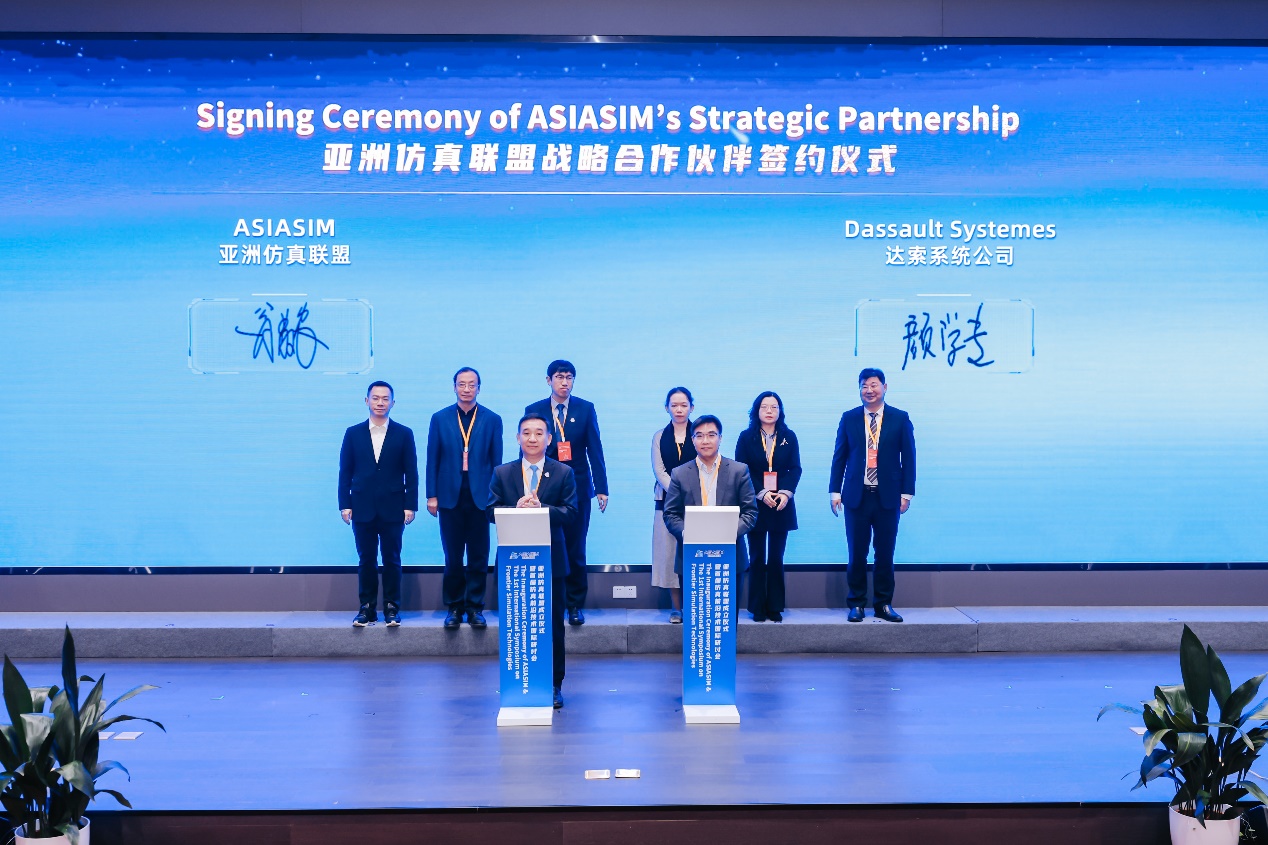 启动仪式上,亚洲仿真联盟首任理事长张霖与欧洲仿真联盟代表勒曼、亚洲仿真联盟首任秘书长翁敬农与全球仿真技术领军企业达索系统公司大中华区首席技术总监颜学专签署战略伙伴合作协议。