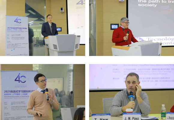 上午的特邀报告环节由北航中国工程院—北航工程教育研究中心主任雷庆主持,三位国际知名专家分享了挑战式学习的最新研究成果和实践经验。蒙特雷理工大学未来教育研究所教授Jorge Membrillo-Hernández系统介绍了TEC21教育模式,阐述了如何通过真实的社会挑战培养学生应对复杂问题的能力,并分享了该校通过模块化内容设计、多挑战设计模式以及与企业深度合作等方式推进CBL的成功经验。香港大学Timothy Hew教授展示了生成式人工智能如何增强学生在挑战式学习中的参与度,为AI技术与教育教学的深度融合提供了新思路。马德里理工大学/蒙特雷理工大学前副校长José Manuel Páez从全球协作视角出发,介绍了蒙特雷理工大学的全球课堂和COIL(国际在线合作学习)项目,分享了其发展历程、运营模式和显著成效,与本次研讨会"全球协作"的主题高度呼应。