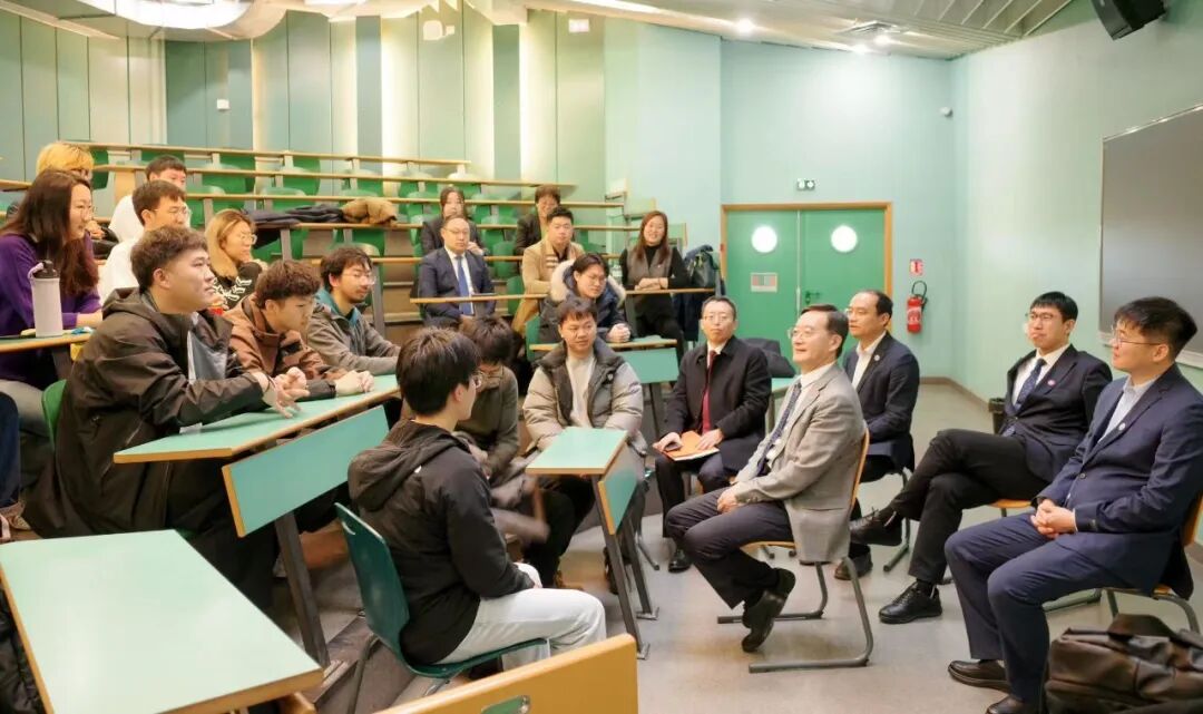 在法国、西班牙访问期间,王云鹏一行还看望了学校中法工程师学院、杭州国际创新研究院在里昂的14名双学位学生,以及计算机学院、电子信息工程学院、自动化科学与电气工程学院、航空科学与工程学院在马德里的11名双学位学生和交换生,同他们亲切交流,详细了解在外学习情况。王云鹏勉励大家,要将个人成长与国家发展紧密结合,珍惜在海外学习的宝贵机会,主动融入当地文化,掌握前沿知识和技能,在专业上深耕精进,早日成为可堪大任的栋梁之才。