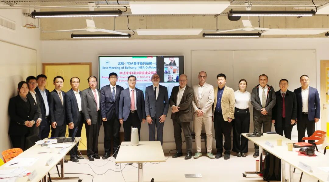 王云鹏一行还访问了法国里昂国立应用科学学院(INSA里昂),会见INSA里昂校长弗雷德里克·弗提亚都(Frédéric FOTIADU)和INSA里昂副校长达米安·法布雷格(Damien FABRÈGUE),双方共同召开首届北航-INSA合作委员会会议。INSA集团主席穆拉德·布哈法(Mourad BOUKHALFA)、INSA集团总干事贝尔唐·哈盖(Bertrand RAQUET)、INSA图卢兹副校长瓦尔特·埃斯科菲耶(Walter ESCOFFIER)等线上参会。会议围绕中法未来科技学院建设、校际人员交流合作、国际化人才培养等方面进行深入交流。