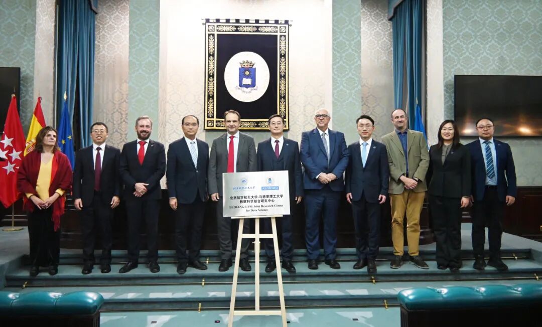 随后,王云鹏与加西亚共同为“北航-马德里理工大学数据科学联合研究中心”揭牌。该中心自2019年由两校计算机学院共同发起,汇聚双方在数据智能理论及应用领域的优质科研力量,致力于开展战略性、原创性研究,并探索产学研协同创新模式。王云鹏指出,研究中心的成立是两校合作新的里程碑,希望其成为吸引全球优秀学者的高地、产出重要成果的平台以及推动两校全方位合作的“加速器”。