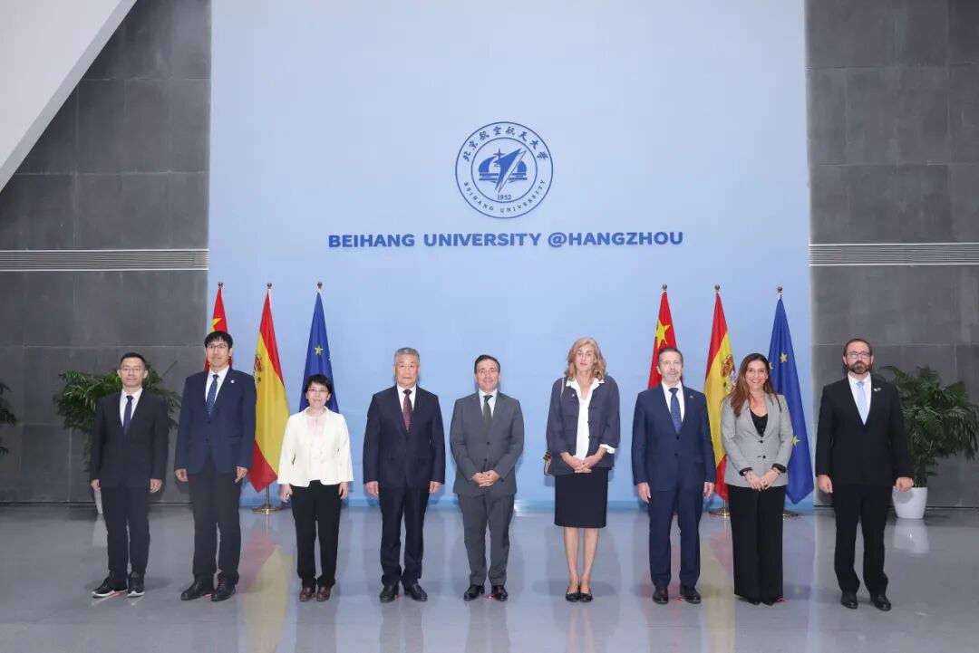 2025年是中西两国外交的重要一年,西班牙国王、首相及外交大臣先后访华。两国《关于加强全面战略伙伴关系的行动计划(2025-2028)》中明确提出:“双方将深化高校领域合作,推动联合学位项目建设,促进师生交流互访。”2025年10月,西班牙外交大臣阿尔瓦雷斯一行访华期间到访北航杭州国际校园,北航党委书记赵长禄与瓦伦西亚理工大学校长卡比亚共同会见来宾。阿尔瓦雷斯表示:中西智能学院的建设发展是两国关系友好发展历程中的重要里程碑,承载了两国对合作与理解的坚定承诺,象征着两国在高等教育领域的深度互信与共同愿景。